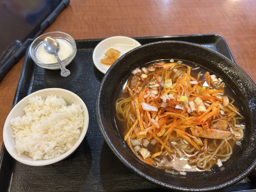 弁当はなしにして久しぶりの昼飯に「華緑」のネギラーメン定食。量が少し少ないので完食しました。